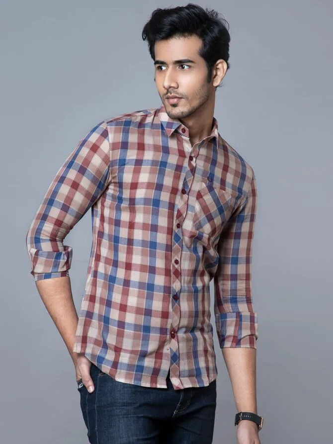 Wine Check Cotton Shirt